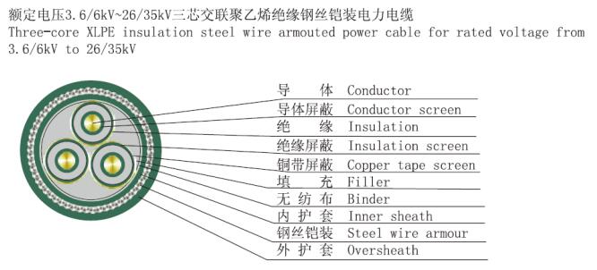 銅芯交聯(lián)聚乙烯絕緣細(xì)鋼絲鎧裝聚乙烯護套電力電纜 |